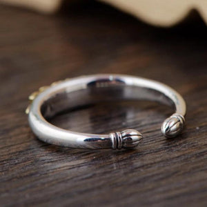 The lotus flower symbolizes spiritual awakening, the realization of being, and enlightenment. Embody all the beautiful characteristics of the lotus flower by wearing this stunning Sterling Silver & Gold Lotus Flower Ring. Made with 925 sterling silver and is one-size-fits-most as the band is adjustable! "Just like the lotus, we too have the ability to rise from the mud, bloom out of the darkness, and radiate into the world." The lotus flower thrives from the darkness that is mud and blooms from the energy of the sun. Let this gorgeous vintage lotus flower ring remind you that you too will flourish from hardships and change. Believe, trust, learn, and grow from your trials and tribulations.
