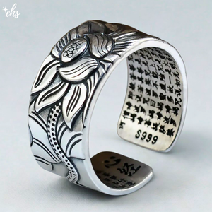 This shining, versatile, and fashionable Sterling Silver Adjustable Lotus Ring is perfect for those searching for hope, purity, and optimism. The lotus flower symbolizes spiritual awakening, the realization of being, and enlightenment. "Just like the lotus, we too have the ability to rise from the mud, bloom out of the darkness and radiate into the world." The lotus flower thrives from the darkness that is mud and blooms from the energy of the sun. Let this gorgeous vintage lotus flower ring remind you that you too will flourish from hardships and change. Believe, trust, learn, and grow from your trials and tribulations.