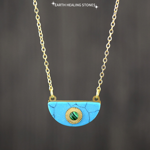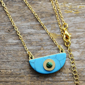 Add a little pop of color to your look with our Turquoise Half-Moon Necklace. Crafted from a dainty gold chain and a vibrant blue half-moon pendant, this will be the perfect addition to your stack. In addition, we've added the perfect color contrast with a beautiful, all-natural malachite center gemstone.