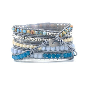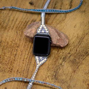 The new Healing Aura Topaz Apple Watch Strap was inspired by our best-seller, Healing Aura Blue Topaz Wrap Bracelet. You can now enjoy the benefits of healing crystal jewelry while simultaneously wearing your smartwatch! This unique, one-of-a-kind Apple Watch Strap features 100% all-natural Agate, Jasper, and Blue Topaz stones.