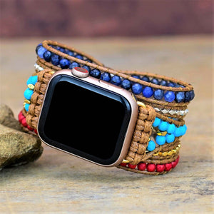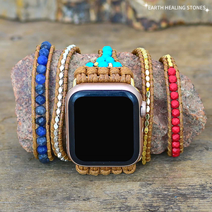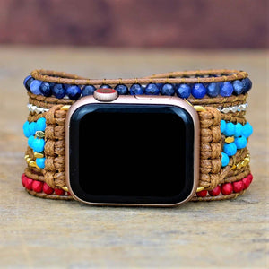 You can now enjoy the benefits of healing crystal jewelry while simultaneously wearing your smartwatch! This unique, one-of-a-kind Apple Watch Strap features 100% all-natural Red Jasper, Turquoise, and Sodalite stones.