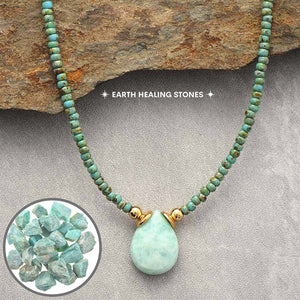 Natural Amazonite is the ultimate calming stone. Wear this beautiful necklace and feel relaxed, grounded, and balanced; experience a state of divine peace. Amazonite is known as the anti-anxiety stone within the healing crystal community. Hold this sacred stone close to the body and become free of all toxic emotions. Amazonite helps alleviate unnecessary worry or fear as it gently calms the mind. Visualize water running along the Amazon River. Let go of all negative feelings. Allow what is no longer serving you to flow like water from the mind, body, and soul.