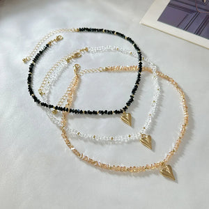 This Crystal Bead Retro Heart Necklace features sparkling crystal beads and a classic heart accent for effortless statement wear.