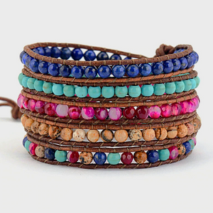 Lovely and vibrant, our new Dreamy 5 Layer Wrap Bracelet. The perfect color combination! Hand-selected stones combined together to make one BOLD bracelet. The energies of these four stones together are ultra-powerful.