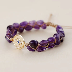 The Amethyst Evil Eye Bracelet combines the protective power of the evil eye with the calming energy of amethyst. Known for its ability to reduce stress, enhance intuition, and promote spiritual balance, amethyst shields against negativity while encouraging inner peace. Wear this bracelet for protection, clarity, and positive energy every day.
