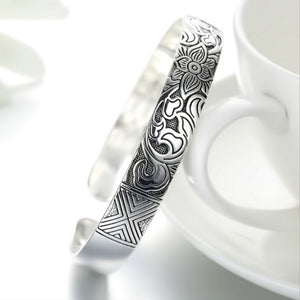 This shining, versatile, and fashionable Silver Vintage Lotus Bangle is perfect for those searching for hope, purity, and optimism. The lotus flower symbolizes spiritual awakening, the realization of being, and enlightenment. "Just like the lotus, we too have the ability to rise from the mud, bloom out of the darkness, and radiate into the world." The lotus flower thrives from the darkness that is mud and blooms from the energy of the sun. Let this gorgeous vintage lotus flower bangle remind you that you too will flourish from hardships and change. Believe, trust, learn, and grow from your trials and tribulations.